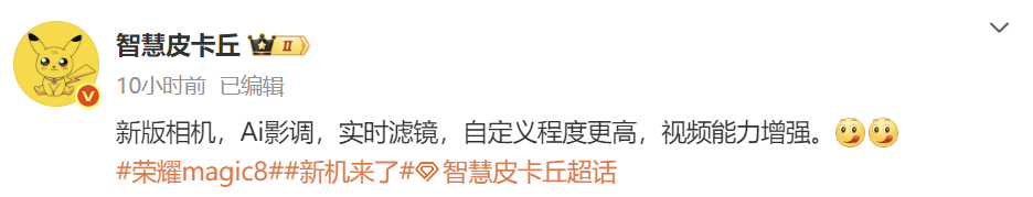 这为AI调色供给了底层数据支撑,荣耀Magic8系列选择了一条差同化突围径,虽然是简单的一句话,