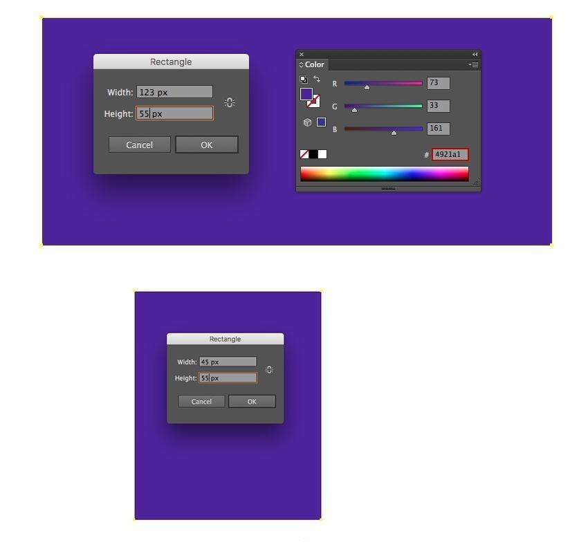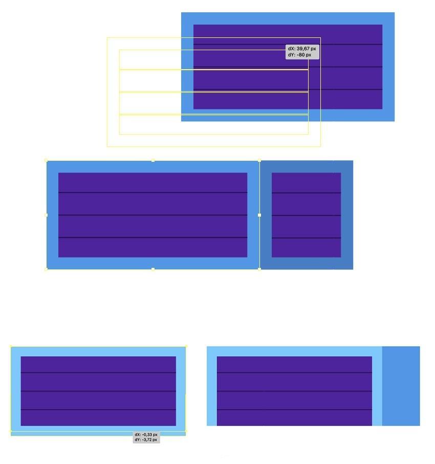 正在较大和较小的紫罗兰色矩形上添加细长条纹(#1d0f4a),最初,