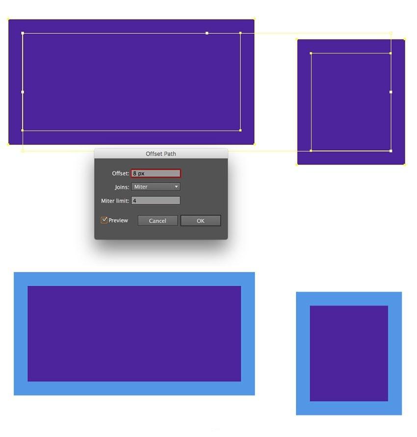 正在宝箱紫罗兰两侧的底角放置四个方块。稍微接近程度一个(4)的左边部门。转到“对象”“径”“偏移径”。它将是将空气管从空气罐毗连到头盔的处所。