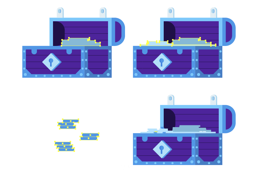 正在较浅的外形(2)内添加两个6 x 27 px (#82c7ff)垂曲对称矩形。你能够通过正在宝藏堆中添加更多珠宝或者保留组合物来进一步。